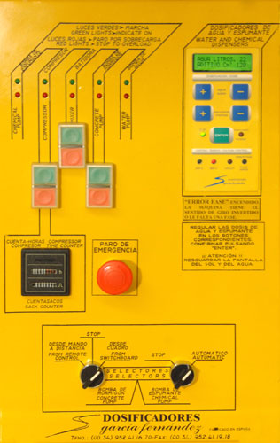 L’opérateur chargé de faire fonctionner la machine doit sélectionner la densité requise selon les prescriptions et le type d’application. Il doit programmer lui-même la machine et réaliser le remplissage de ciment du batteur. Avec chaque sac de ciment, les pompes à eau et l’additif fournissent une dose à l’intérieur du batteur.