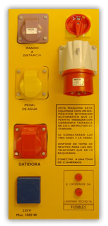 Le panneau gauche de l’ensemble du tableau de commandes : avec prises de connexions et fusibles. Les erreurs sont impossibles grâce aux différentes couleurs des prises et des fiches.