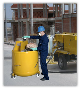 Batteur entièrement fabriqué en acier inoxydable de 500 litres de capacité, monté sur trois roues pour le déplacer facilement sur le chantier et trois poignées pour le manipuler. Le batteur est équipé d’un filtre au fond pour empêcher l’introduction d’objets à l’intérieur de la pompe. Grille et déchireur de sacs. Le batteur est raccordé à la machine par un tuyau. Axe agitateur anti-usure. Carcasse de protection du moteur avec ventilation, le couvercle dispose d’un pivot d’ancrage pour la pédale de dosage eau – additif chimique.